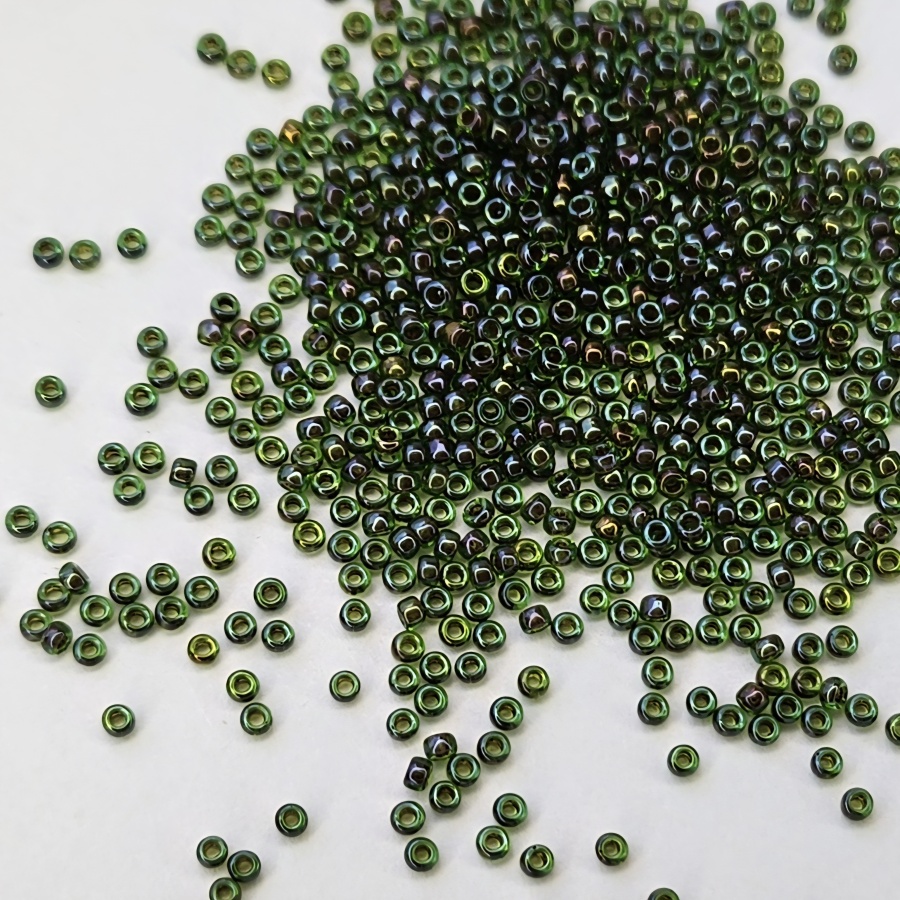 Бисер Японский оттенки зеленого Toho Round 15/0, №247, Peridot /Oxblood Lined 4гр