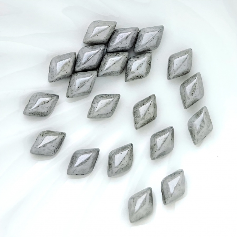 Бусины чешские ромбы серый блеск GemDuo, 03000/14449 Chalk Jet Luster, 20шт