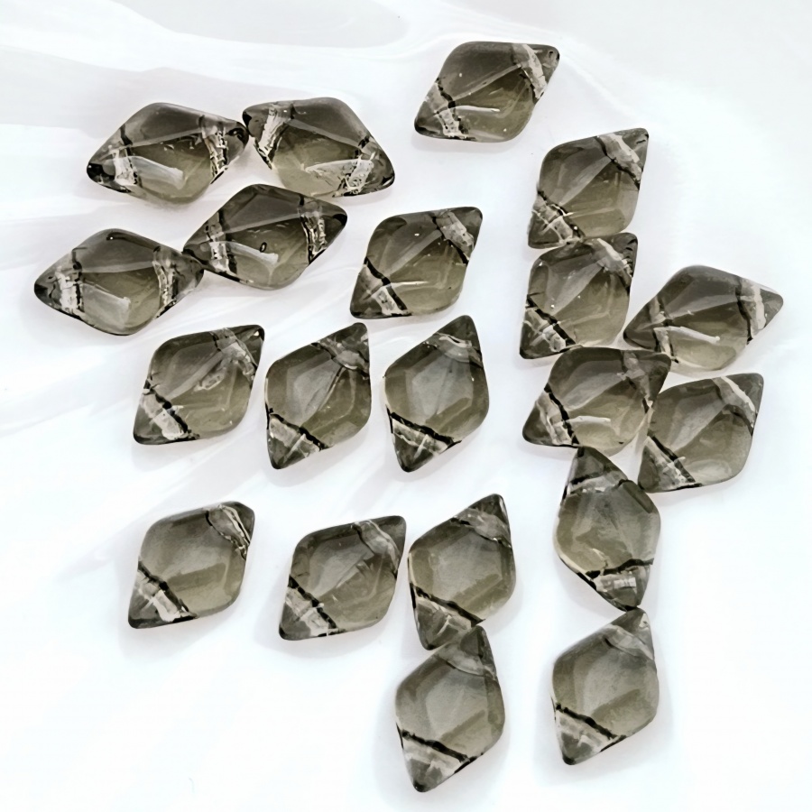 Бусины ромбы серые прозрачные GemDuo, 40020 Smoky Grey, 20шт