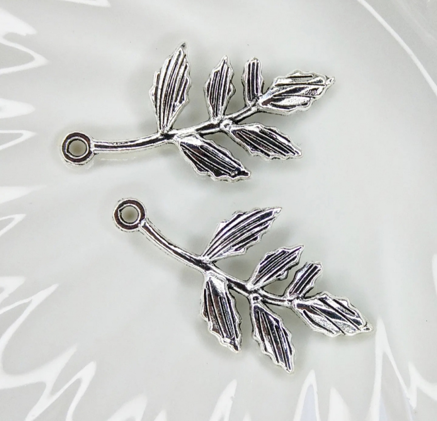 Ветки с листьями Серебро, 30мм, 2шт