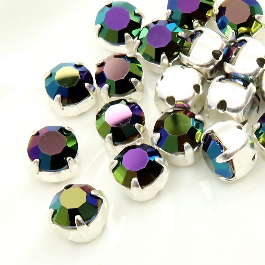Шатон Чехия зеленый павлин Peacock Green, 6мм, 1шт