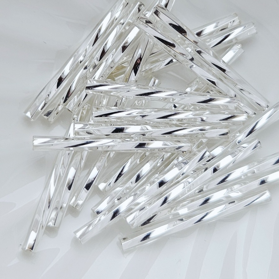 Стеклярус витой Чехия Preciosa 78102 Серебро, 25мм, 5гр (25шт)