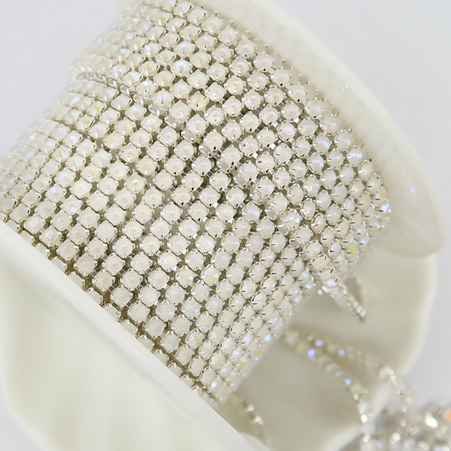 Стразовая цепь белая с переливом, ss6 (2мм)