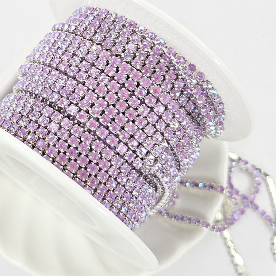Стразовая цепь, сиреневая с переливом, ss6 (2мм)