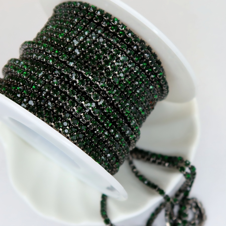 Стразовая цепь темно-зеленая в гематитовой оправе, 2мм (ss6)